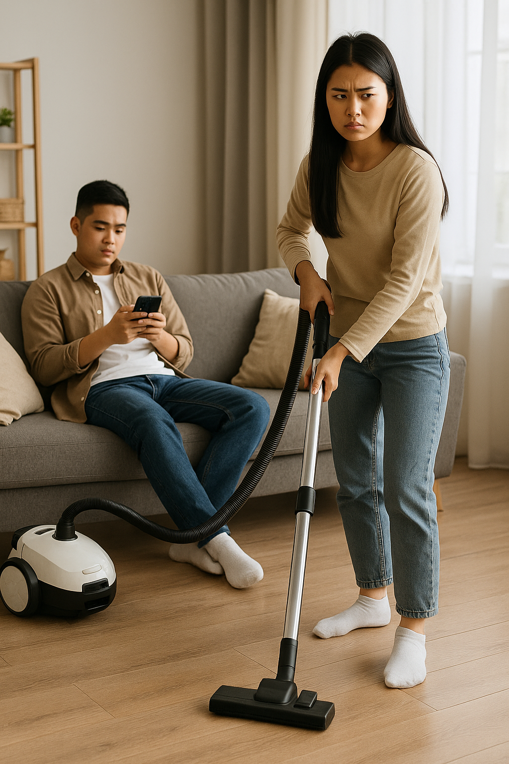 Тимур рос в другой семье. Его отец не зарабатывал много, но при этом считал, что "дом — не мужское дело". Он мог прийти домой и с порога бросить: "Почему ещё не готов ужин?". Он никогда не мыл посуду, не занимался с детьми, не помогал в уборке. Мать всё делала сама, при этом, работая наравне с ним. Тимур видел это каждый день. В его голове формировалось простое уравнение: мужчина не занимается домом. Так прошли его школьные и студенческие годы. Когда он женился, этот шаблон проявился с такой же силой. Он мог часами играть в телефон после работы, пока жена одновременно готовила еду, проверяла уроки с ребёнком и гладила бельё. Когда жена уставала и начинала говорить о том, что ей тяжело, Тимур отвечал: "У меня тоже работа, я деньги приношу". Но она приносила не меньше, а иногда даже больше. Тогда она срывалась: "Ты же видишь, что я еле держусь". В ответ он молчал или обижался, считая, что его несправедливо обвиняют. С каждой ссорой она всё чаще ощущала не партнёра, а ещё одного ребёнка, которого нужно обслуживать. В итоге отношения превратились в поле битвы, где он защищал право на "мужскую" позицию, а она защищала право на справедливость. Их квартира всё чаще напоминала не дом, а место вечных претензий.